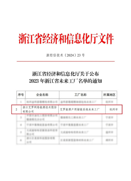 “bifa必发能源户用储能系统未来工厂”上榜浙江省未来工厂
